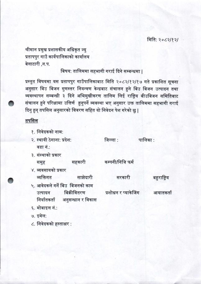 » बीउबिजन उत्पादन तथा व्यवस्थापन तालिमका लागि निवेदन पेश गर्ने सम्बन्धी सूचना ।