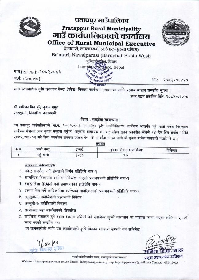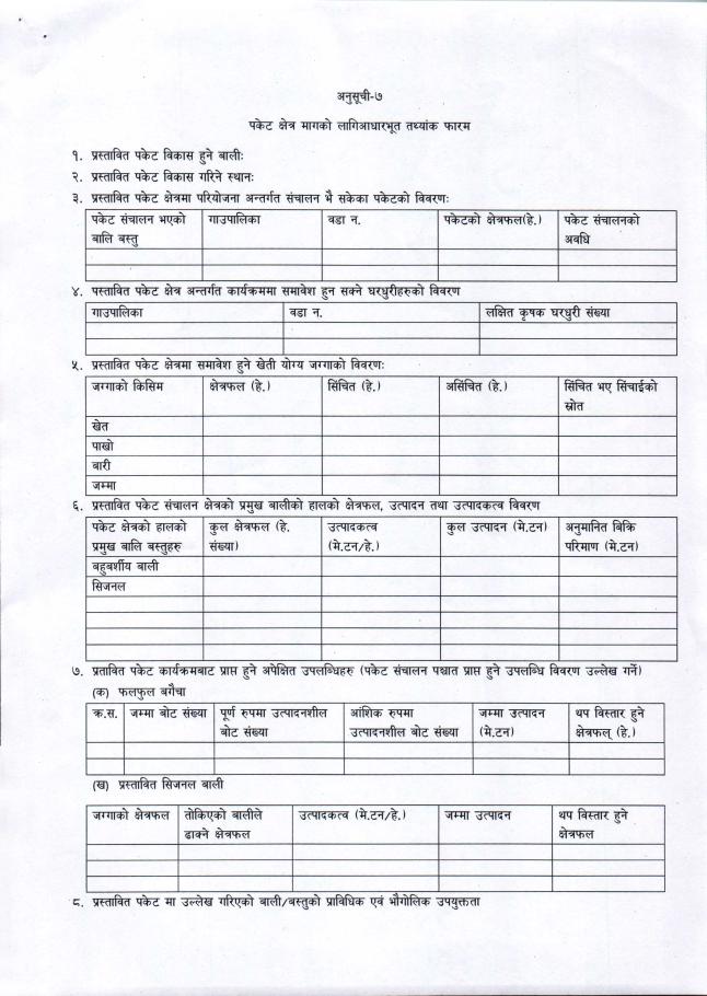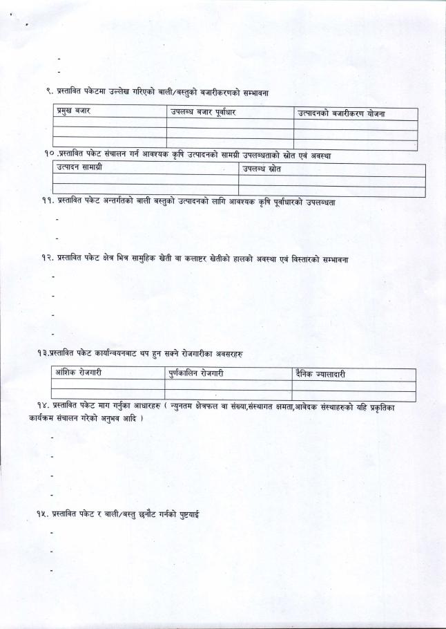 साना व्यवसायिक कृषि उत्पादन केन्द्र (पकेट) विकास कार्यक्रम संचालनका लागि प्रस्ताव आह्वान सम्बन्धि सूचना ।