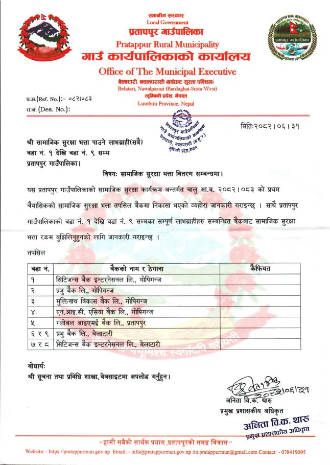 सामाजिक सुरक्षा भत्ता वितरण सम्बन्धमा ।