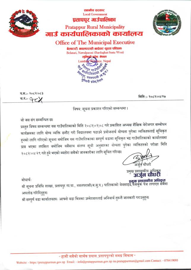 "हामी सबैको सार्थक प्रयास,प्रतापपुरको समग्र विकास"