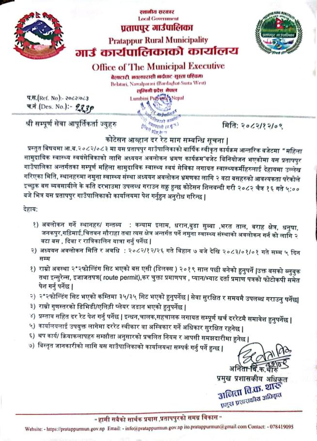 » कोटेसन आव्हान दर रेट माग सम्बन्धि सूचना |