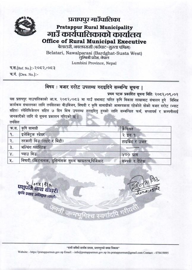 : बजार दररेट उपलब्ध गराइदिने सम्बन्धि सूचना ।