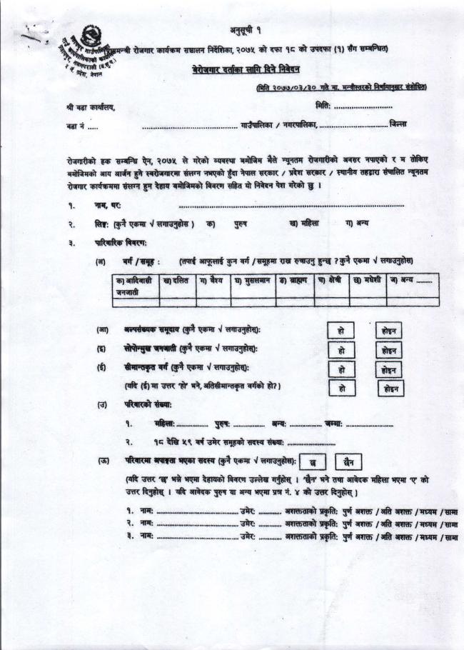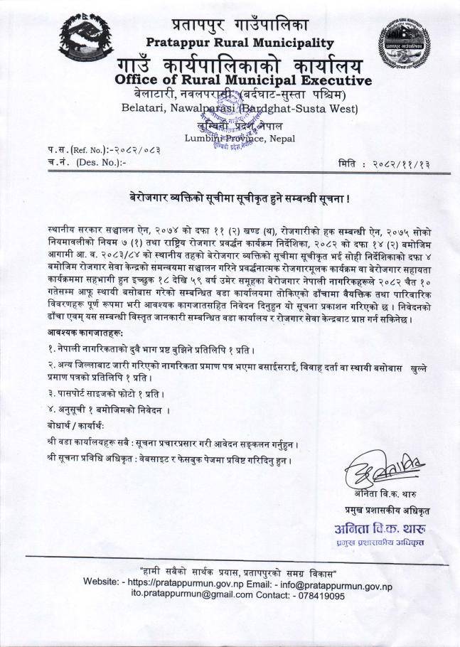 बेरोजगार व्यक्तिको सूचीमा सूचीकृत हुने सम्बन्धी सूचना !