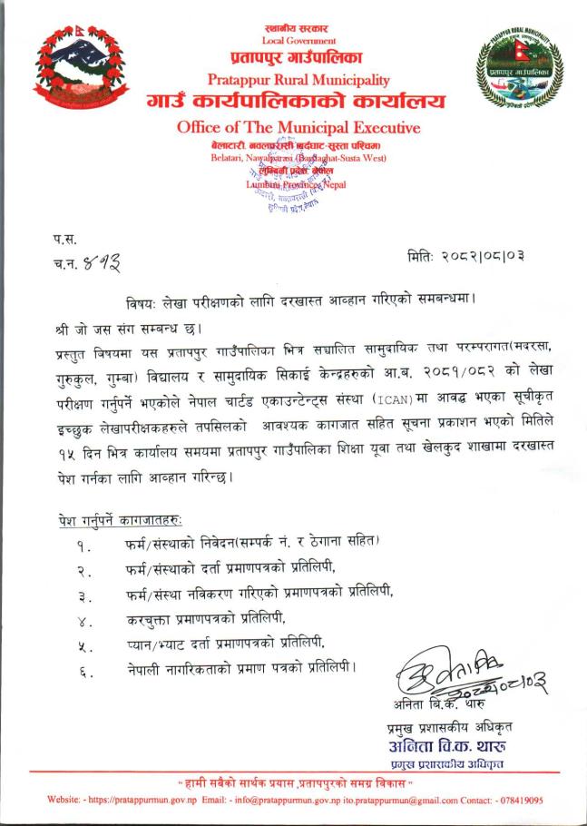 लेखा परीक्षणको लागि दरखास्त आव्हान गरिएको सम्बन्धमा ।