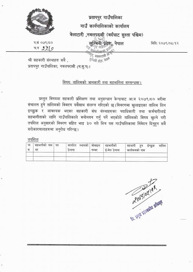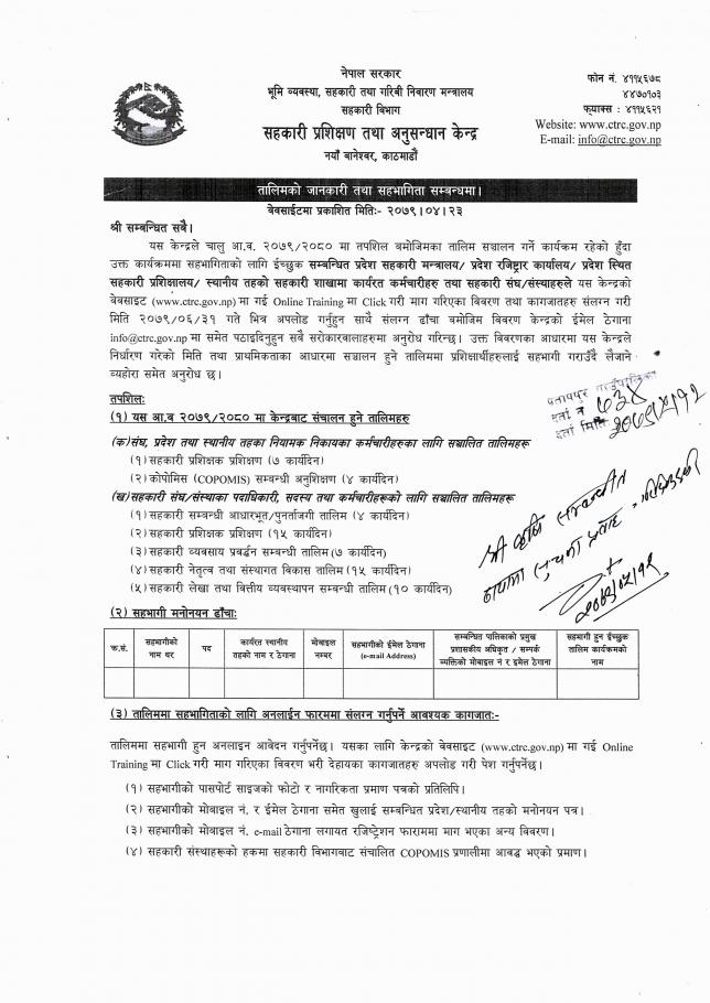 » सहकारी सम्बन्धि तालिमको जानकारी
