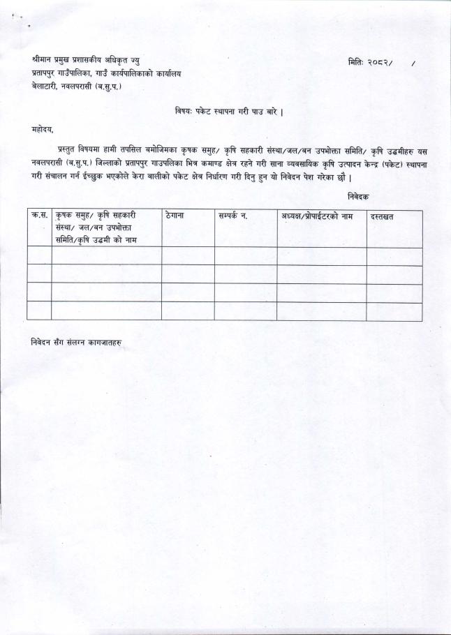 साना व्यवसायिक कृषि उत्पादन केन्द्र (पकेट) विकास कार्यक्रम संचालनका लागि प्रस्ताव आह्वान सम्बन्धि सूचना ।