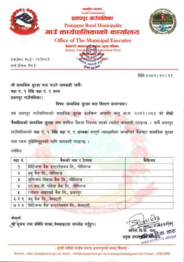 सामाजिक सुरक्षा भत्ता वितरण सम्बन्धमा ।