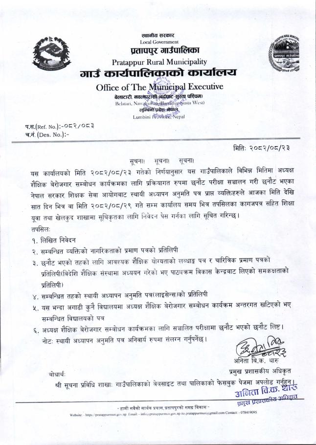 "हामी सबैको सार्थक प्रयास,प्रतापपुरको समग्र विकास"