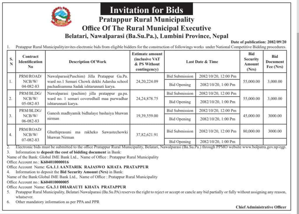 सार्वजनिक खरिद/बोलपत्र सूचना